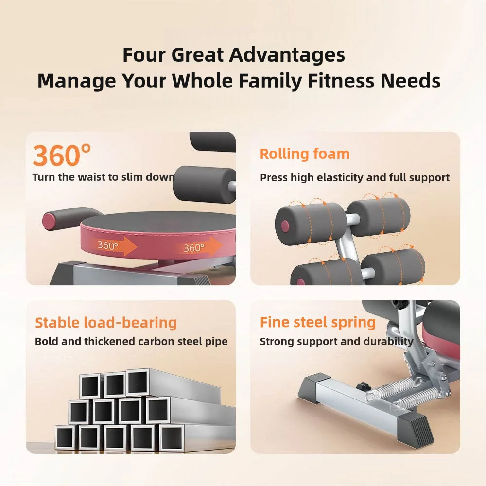 🔥 Full Core Workout – Sit-ups, crunches, leg raises, twists & more in one machine!